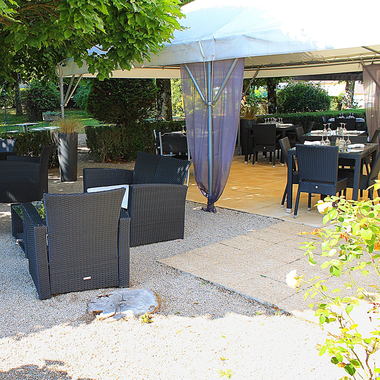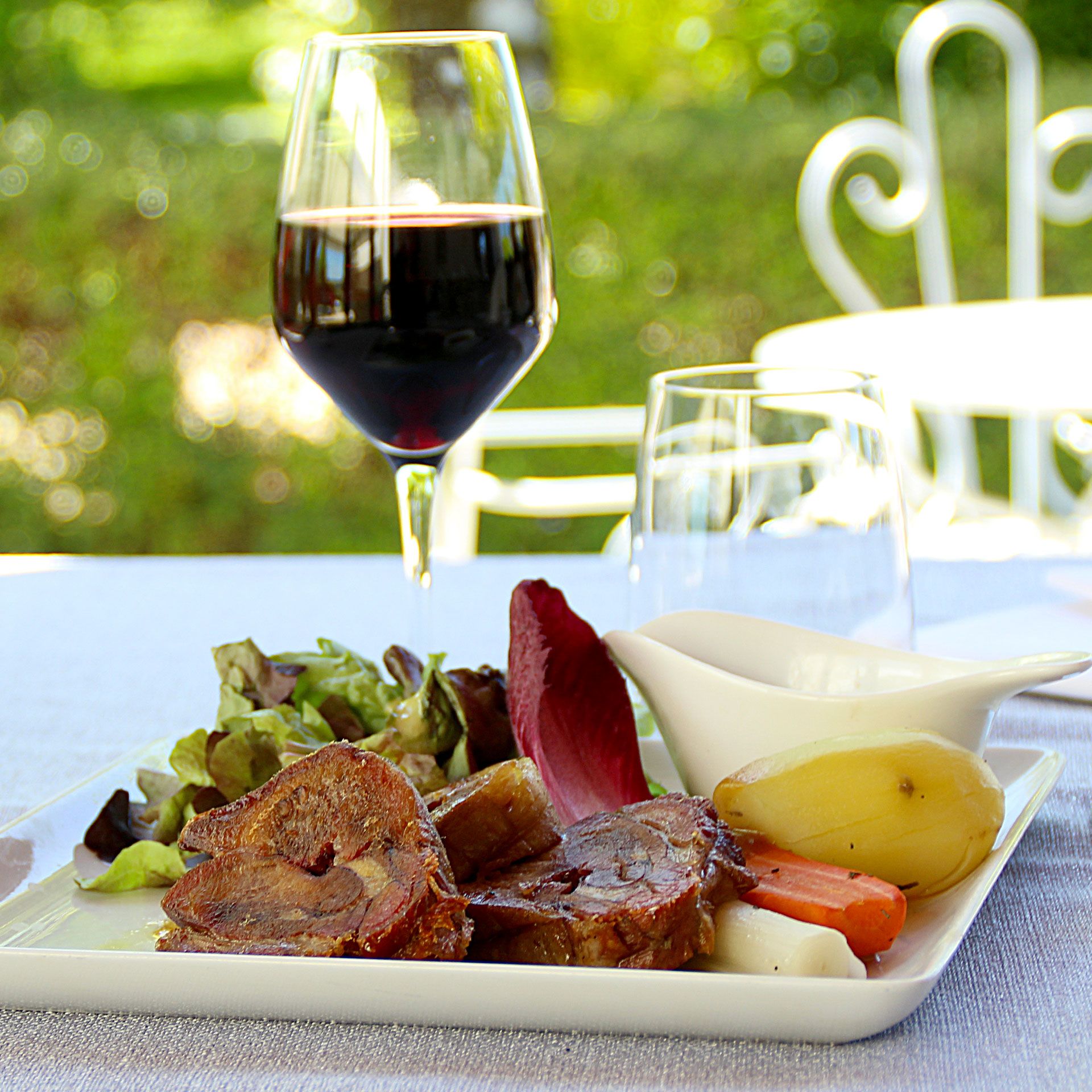 In the dining room, on the veranda and the terrace, we offer a traditional cuisine based on fresh regional products such as veal head, Limousin beef, local cheeses, Relais special cake, Donzenac bread, Limouzi-Saveurs chocolates and biscuits…